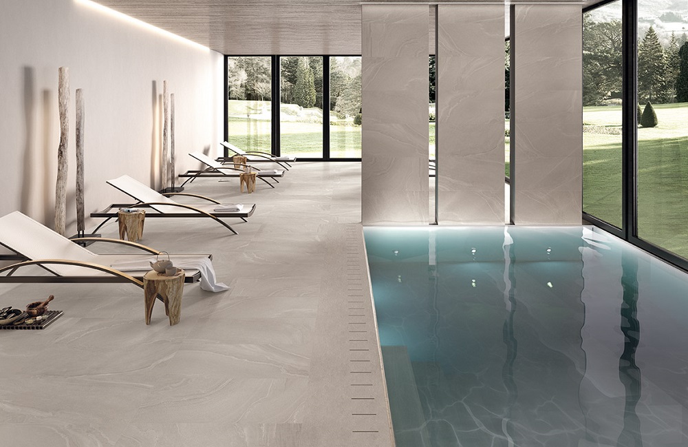 BERNA: Gres porcelánico de gran formato; 100x100cm y 50x100cm. Diseño natural y colores neutros, un material para crear ambiente acogedor y un alto valor estético.