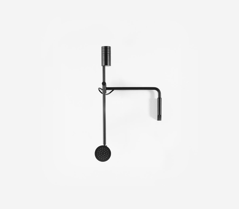 A simple vista no podemos dejar de apreciar la semejanza con una lámpara de estudio, pero no todo es lo que aparenta ser. El rociador de ducha CLOSER es una pieza articulada a la que se le añade un contrapeso para dar estabilidad a las posiciones principales añadiendo un movimiento multidireccional de rociador propiamente dicho para dirigir el chorro del agua a casi cualquiera de las posiciones deseadas por el usuario.